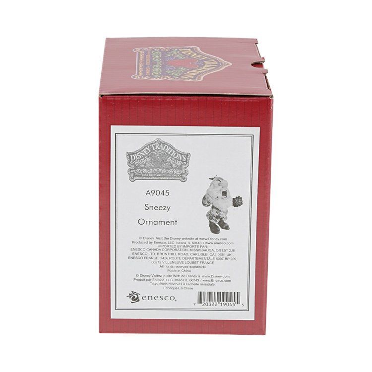 Disney Traditions combineert de magie van Disney met de feestelijke kunstzinnigheid van Jim Shore. Deze Sneezy gegoten stenen hangende ornament zal zeker Disney's magie aan je kerstboom toevoegen. Unieke variaties zijn te verwachten omdat dit product met de hand wordt geschilderd. Verpakt in een merkcadeaudoosje. Geen speelgoed of kinderproduct. Alleen bedoeld voor volwassenen.